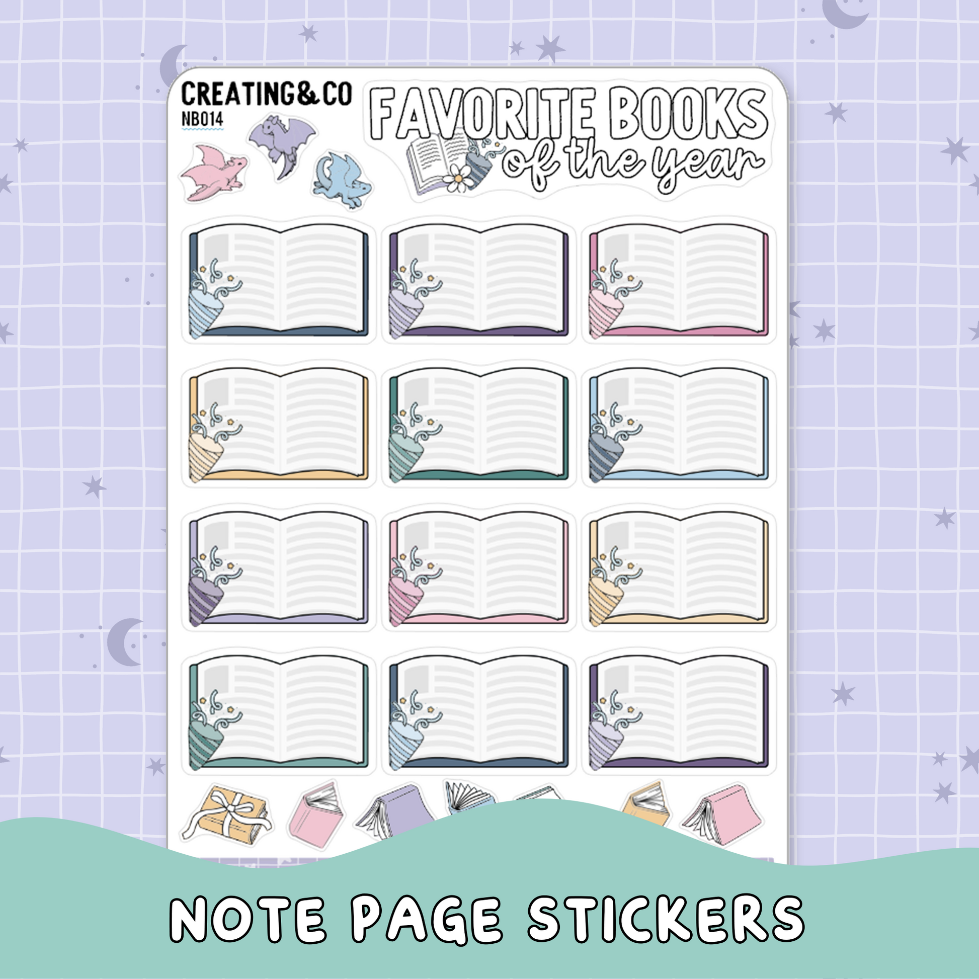 2026 Favorite Books of the Year Note Page Planner & Journal Sticker Sheet Set - NB014