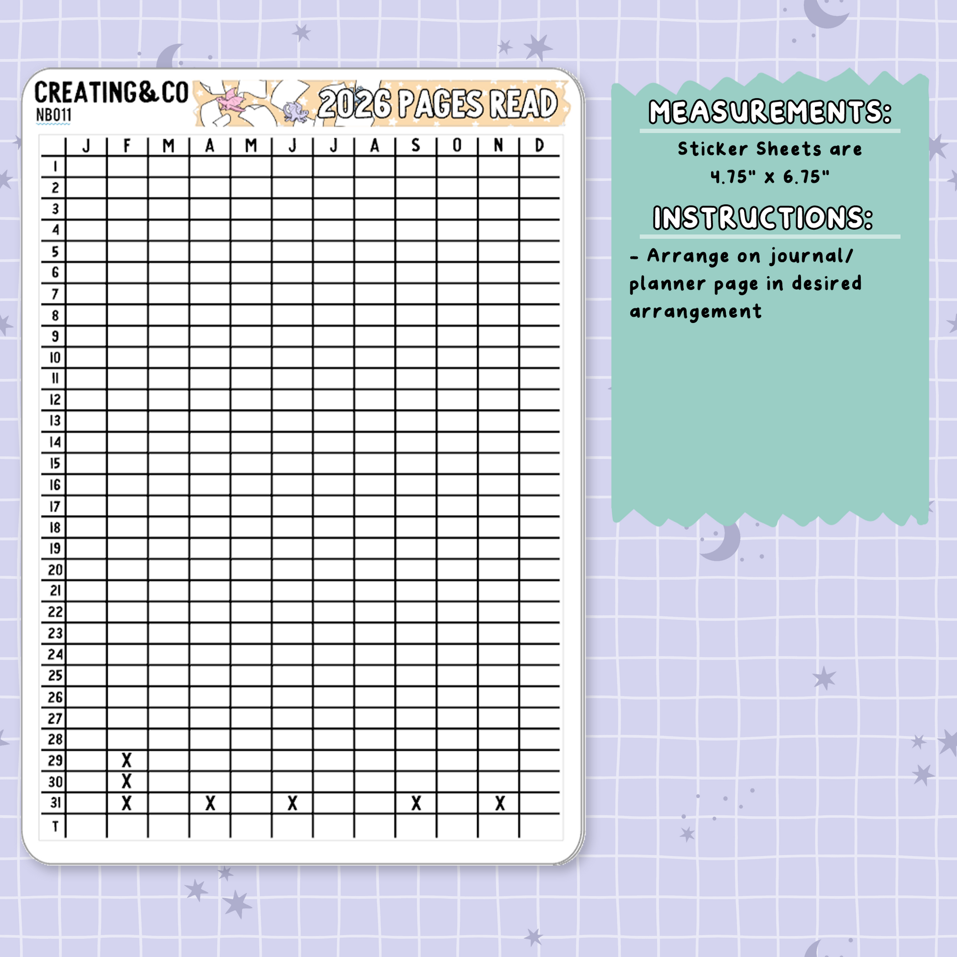 2026 Pages Read Table Note Page Planner & Journal Sticker Sheet Set - NB011