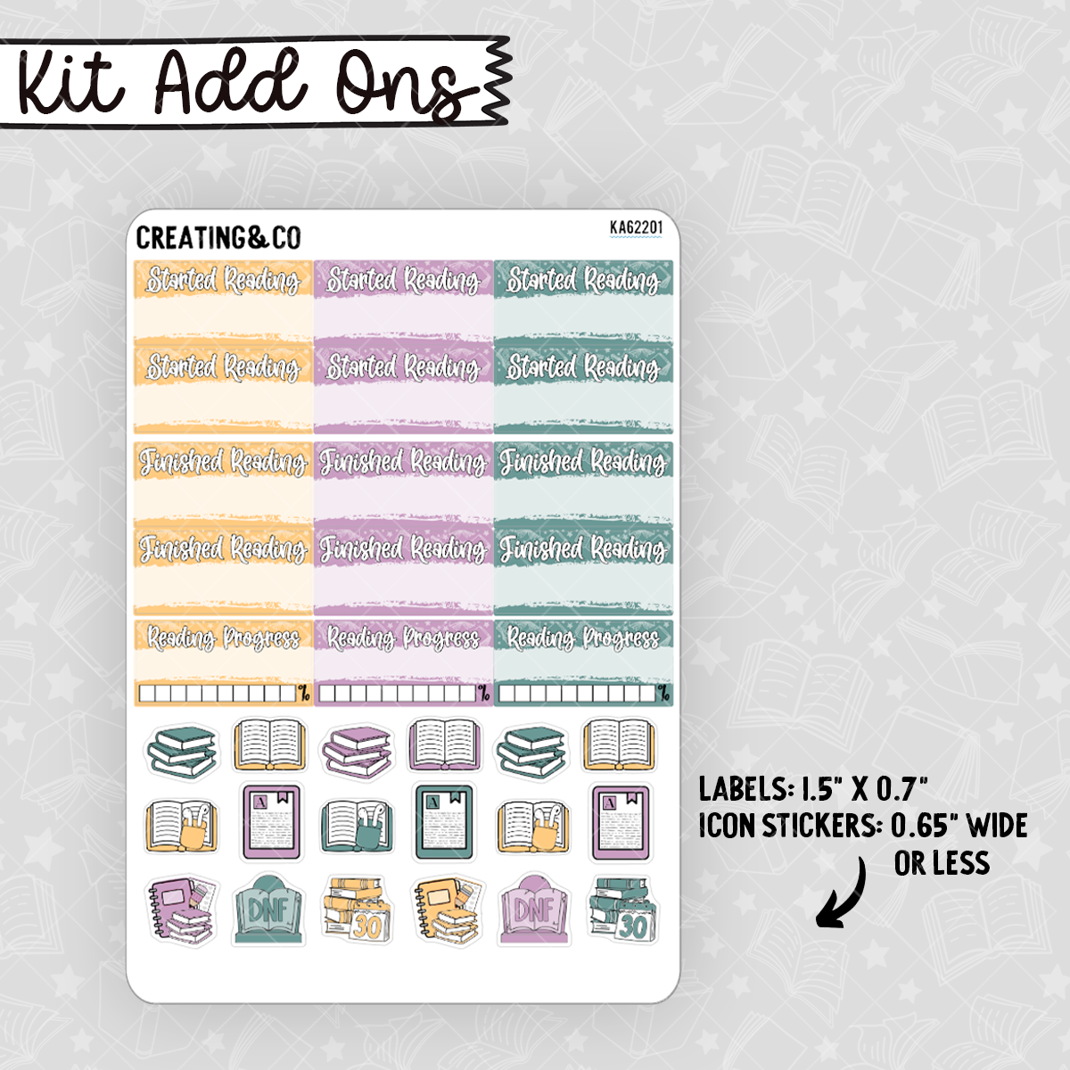 - Reading Sampler - 1 5x7 Sticker Sheets containing stickers for tracking your reading. Each set contains 33 stickers.
