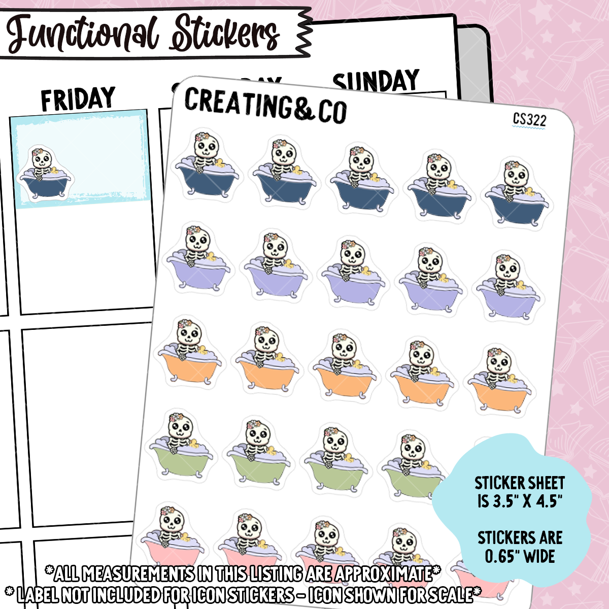 Bath Time Bonnie Bones Character Functional Planner Stickers - CS322