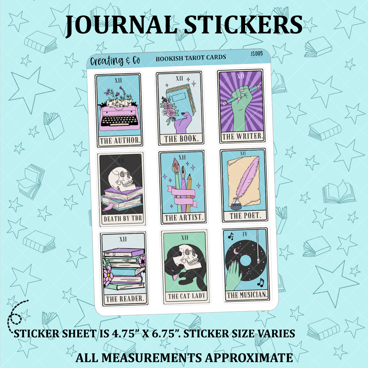 Bookish Tarot Cards - Spooky Library - Journal Stickers - JS005