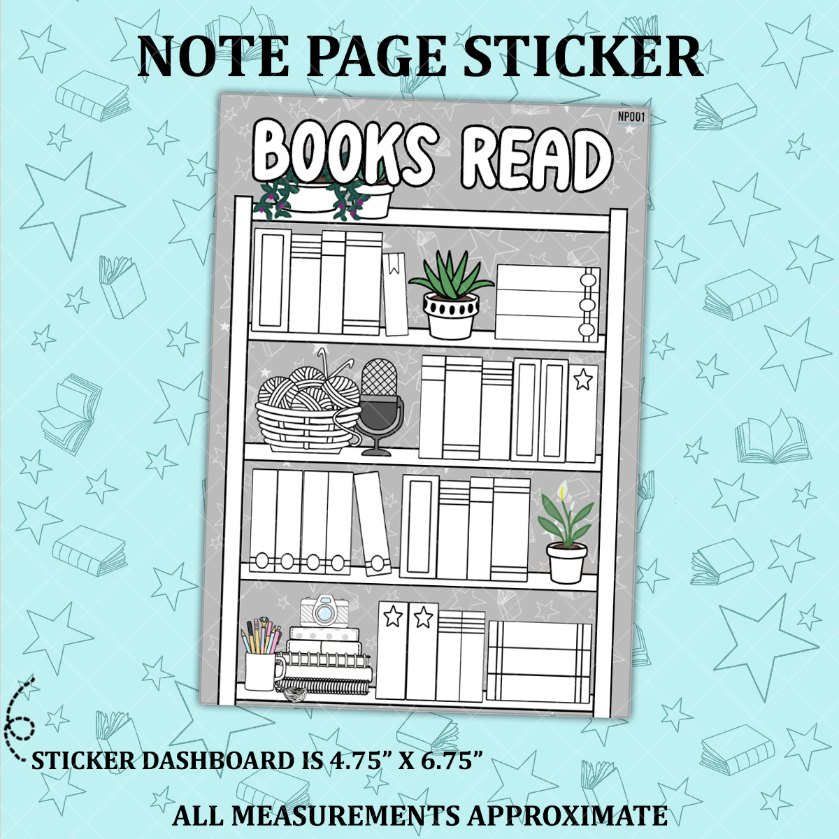 This set comes with one 4.75" x 6.75" dashboard made with our sticker paper. This means that you can hole punch it and use it as is OR you can peel the backing off to stick in your planner. It also comes with a sheet of our book and deco stickers to be used on the dashboard.