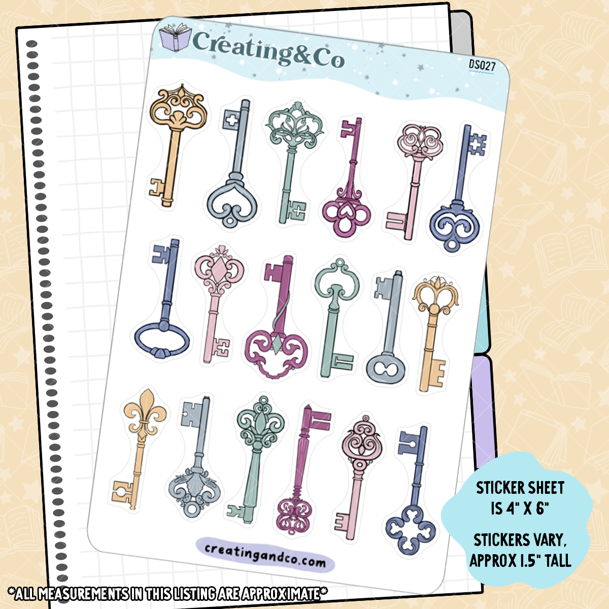 - Vintage Skeleton Key Stickers - 1 4x6 sticker sheet containing stickers for using in your journal.