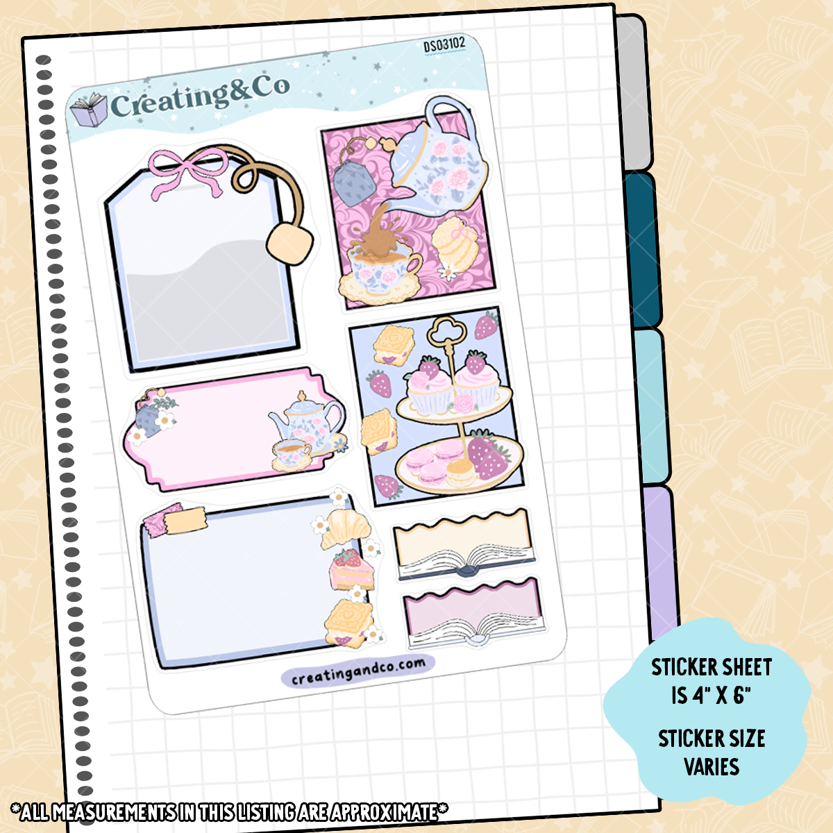 - Decorative Tea Party themed Journal Stickers - 2 4x6 sticker sheets containing stickers for using in your journal.
