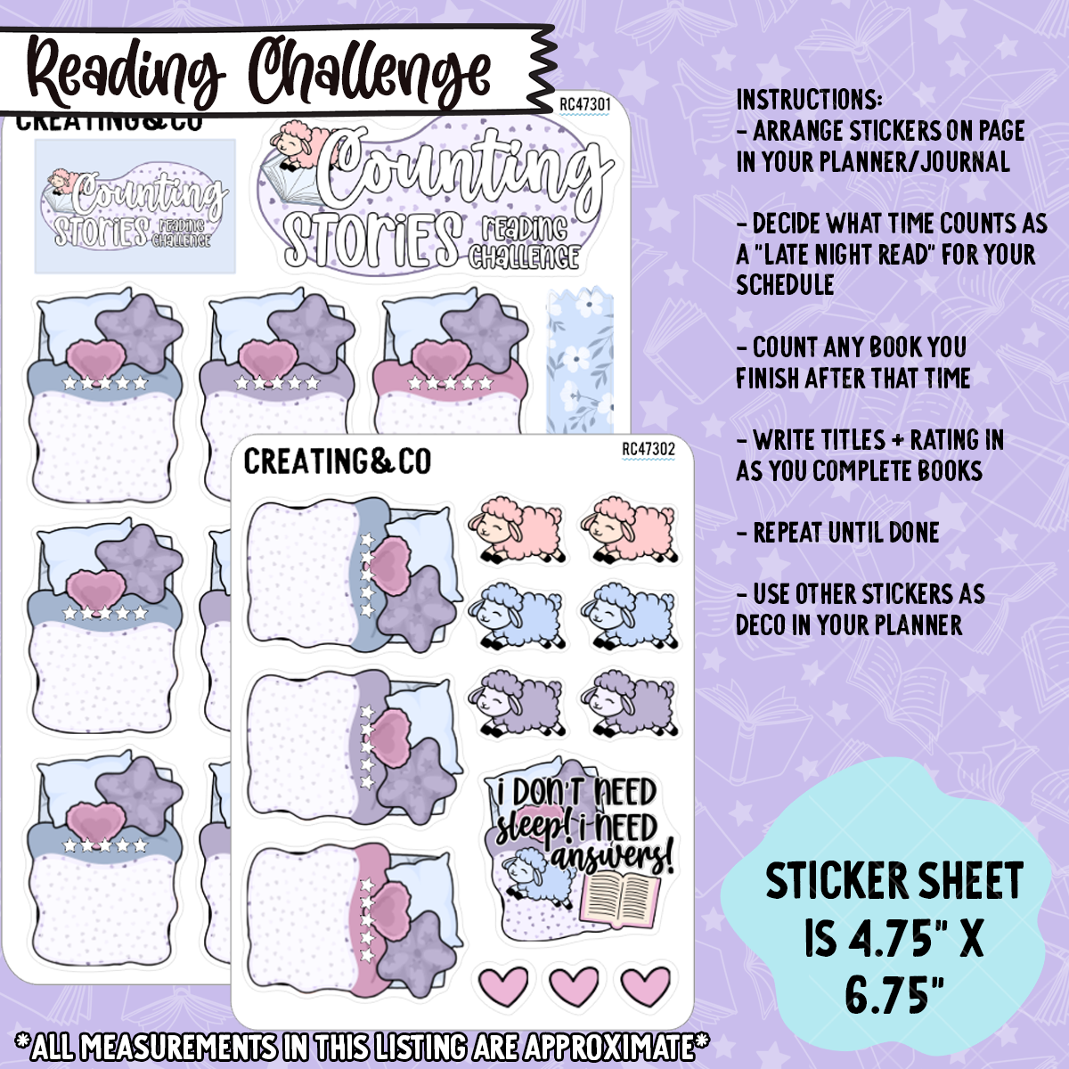 This set comes with 1 4.75" x 6.75" sticker sheet made of our matte sticker paper. Each element is a separate sticker so you can make this reading challenge work in any planner!