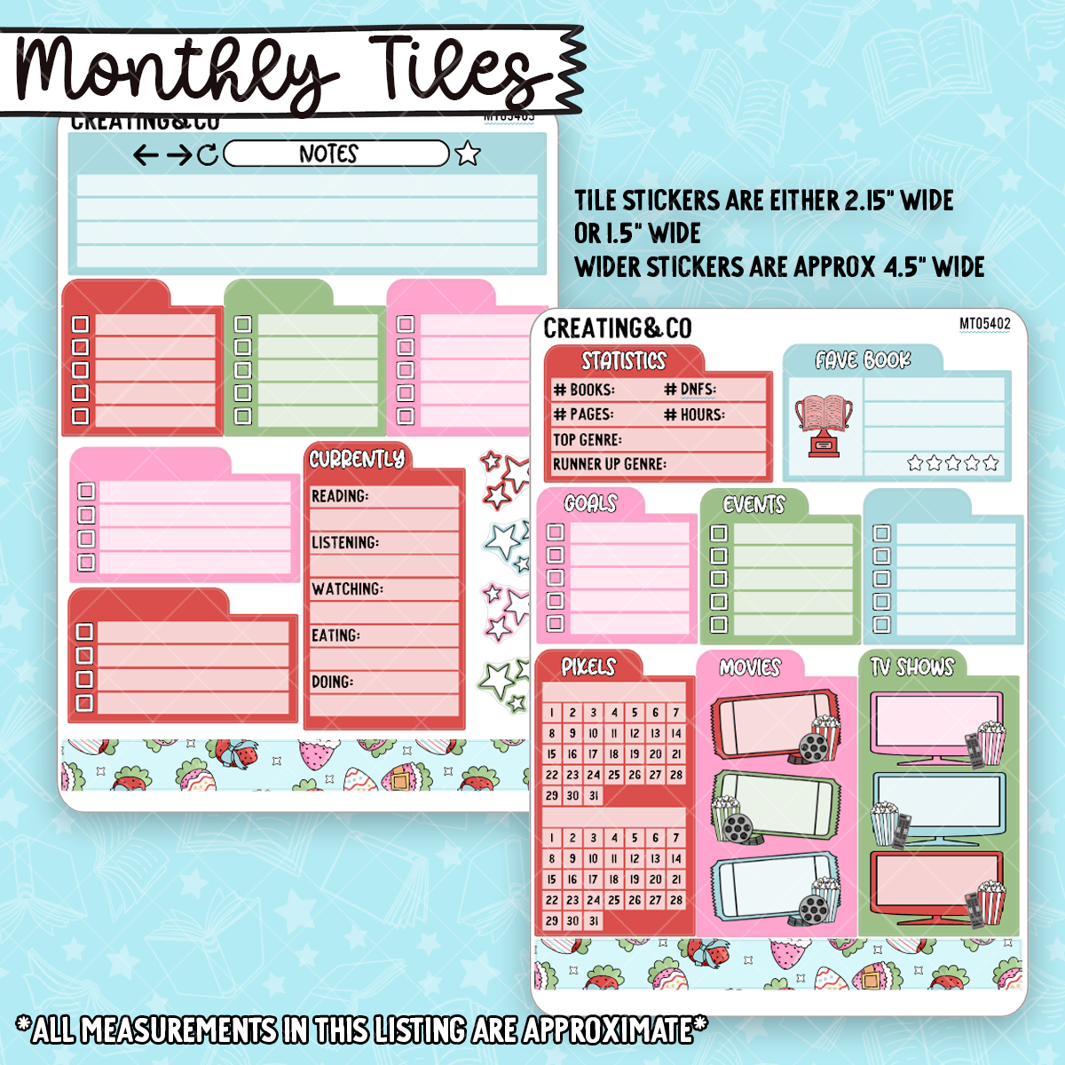 This set of stickers is designed for you to build a monthly wrap up page, tracking what you like. Use the "tiles" on a single page or sprinkled throughout your planner!