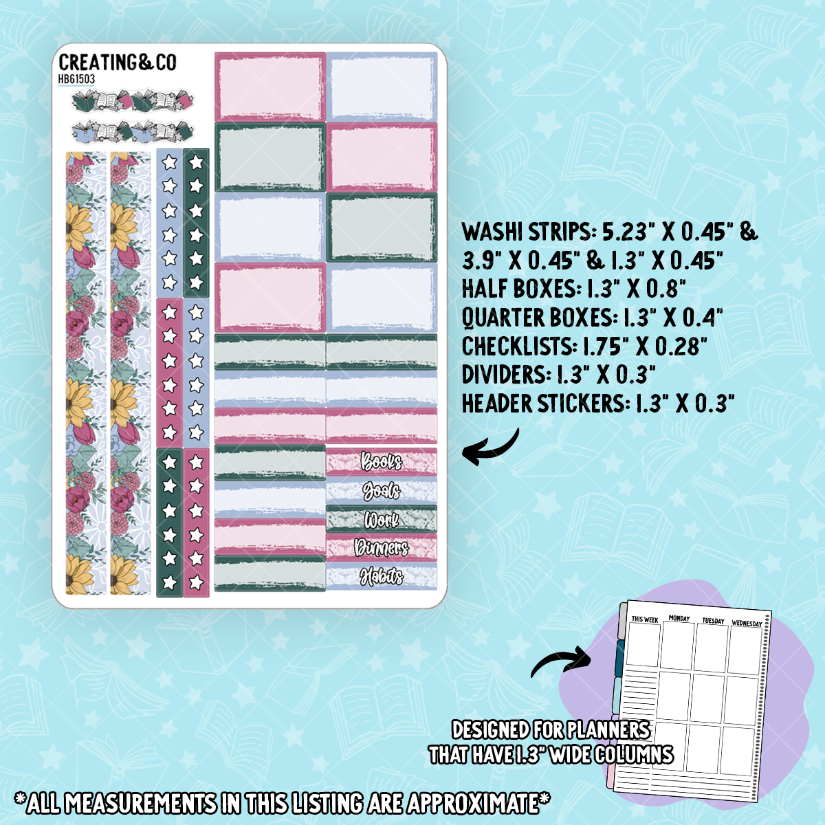 This sticker collection is designed for planners that have 1.3" wide columns and is perfect for creating a cohesive theme across just one week in your planner or even multiple!
