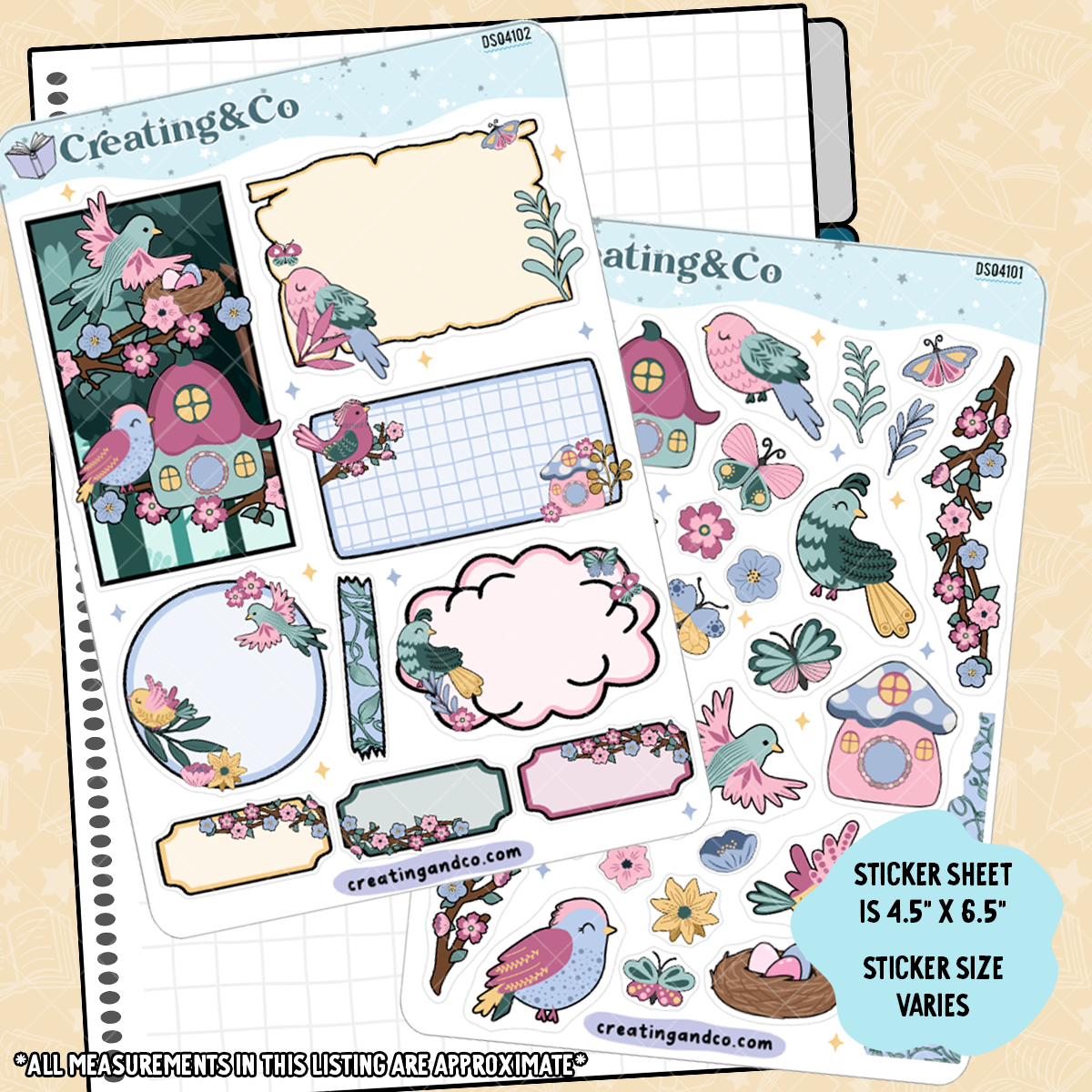 - Journal Layout Stickers - 2 4.5x6.5 sticker sheets containing decorative stickers that match the colors of the overall fall theme but match a "birds in flight" theme
