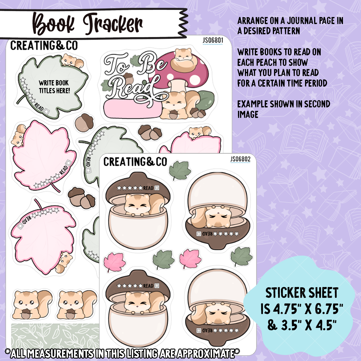 - Squirrel Autumn Leaf Monthly TBR Set - 1 5x7 Sticker Sheet + 1 3.5x4.5 sticker sheet for making a layout for writing in the books you plan to read in a given month