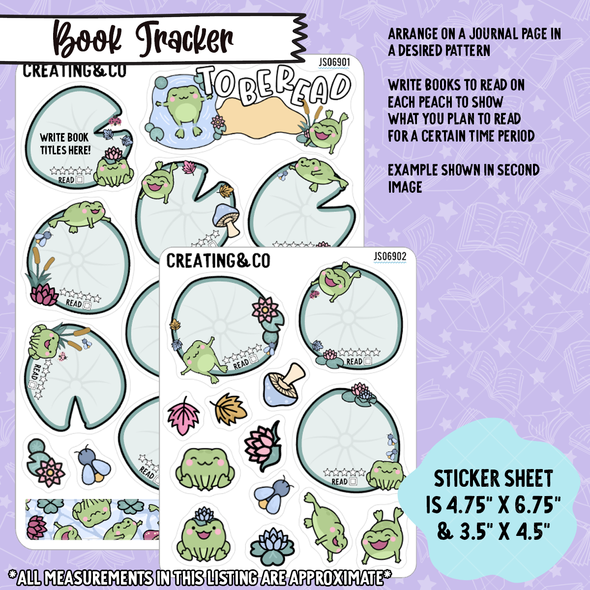 - Frog Pond Monthly TBR Set - 1 5x7 Sticker Sheet + 1 3.5x4.5 sticker sheet for making a layout for writing in the books you plan to read in a given month