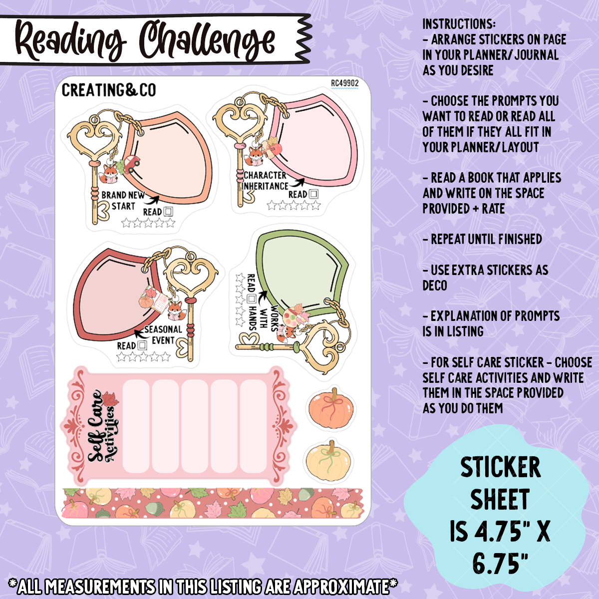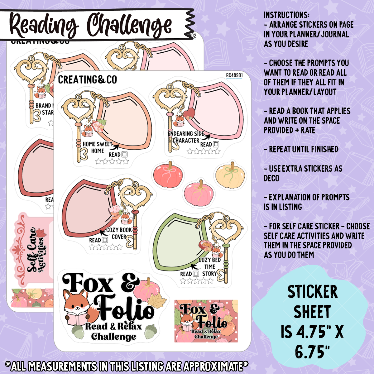 This set comes with 2 4.75" x 6.75" sticker sheets made with our sticker paper. Each reading challenge will also come with a "badge" sticker to be used for tracking the reading events and challenges you participate in this year!