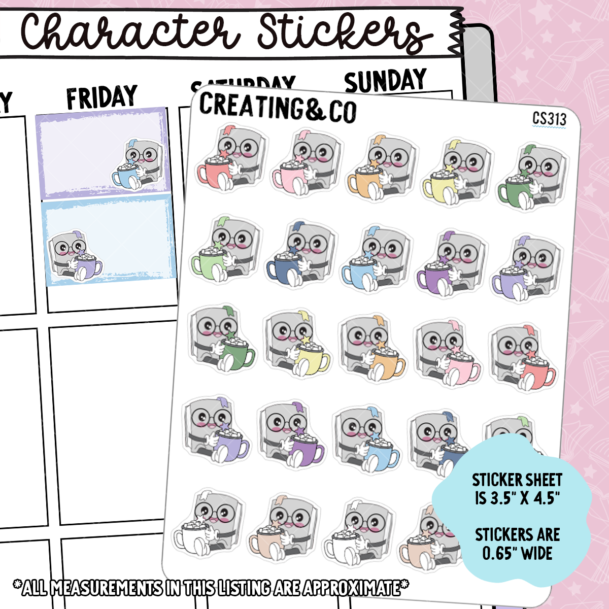 Hot Chocolate Booksy Character Functional Planner Stickers - CS313