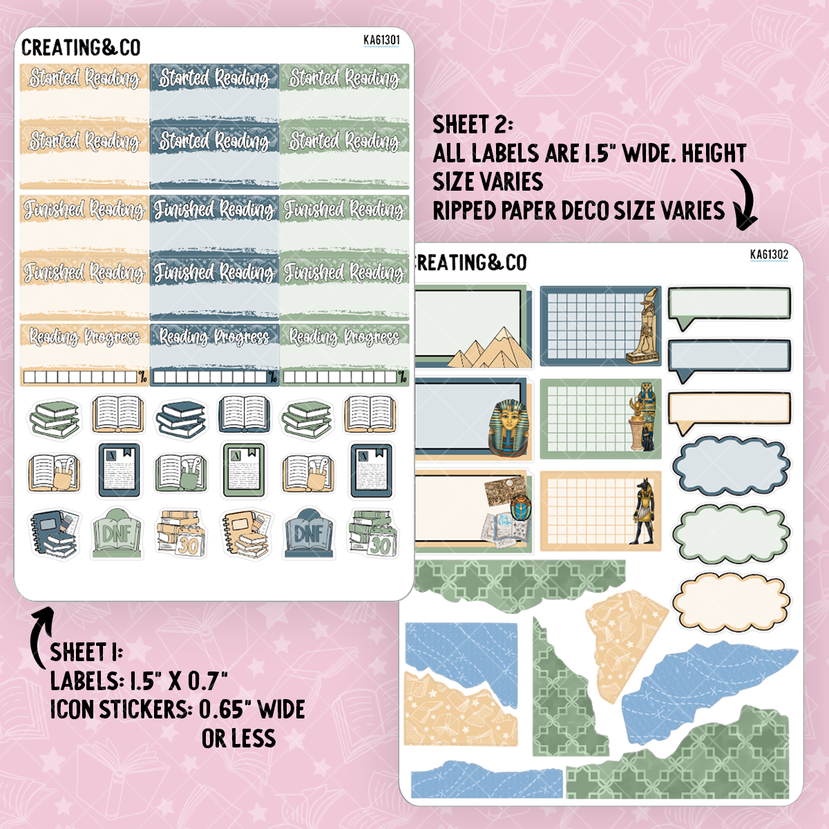 Each set is a single sheet of individually kiss-cut stickers, ready to peel and use in your planner or calendar. Each sticker sheet is 4.75" x 6.75"