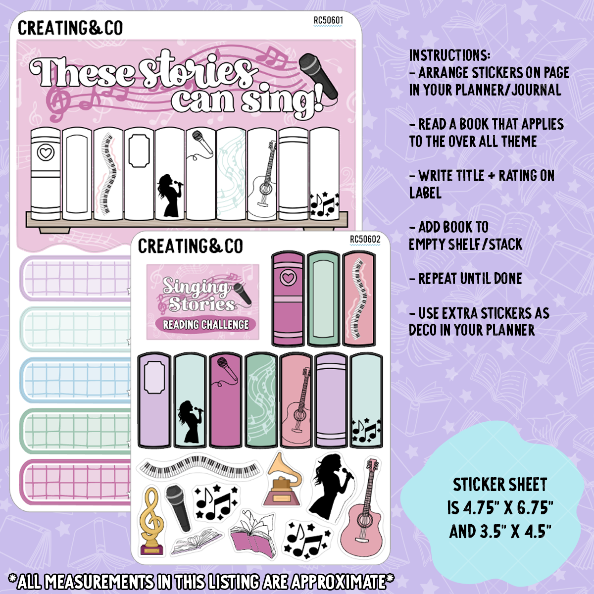 This set comes with 1 4.75" x 6.75" sticker sheet made of our matte sticker paper. Each element is a separate sticker so you can make this reading challenge work in any planner!