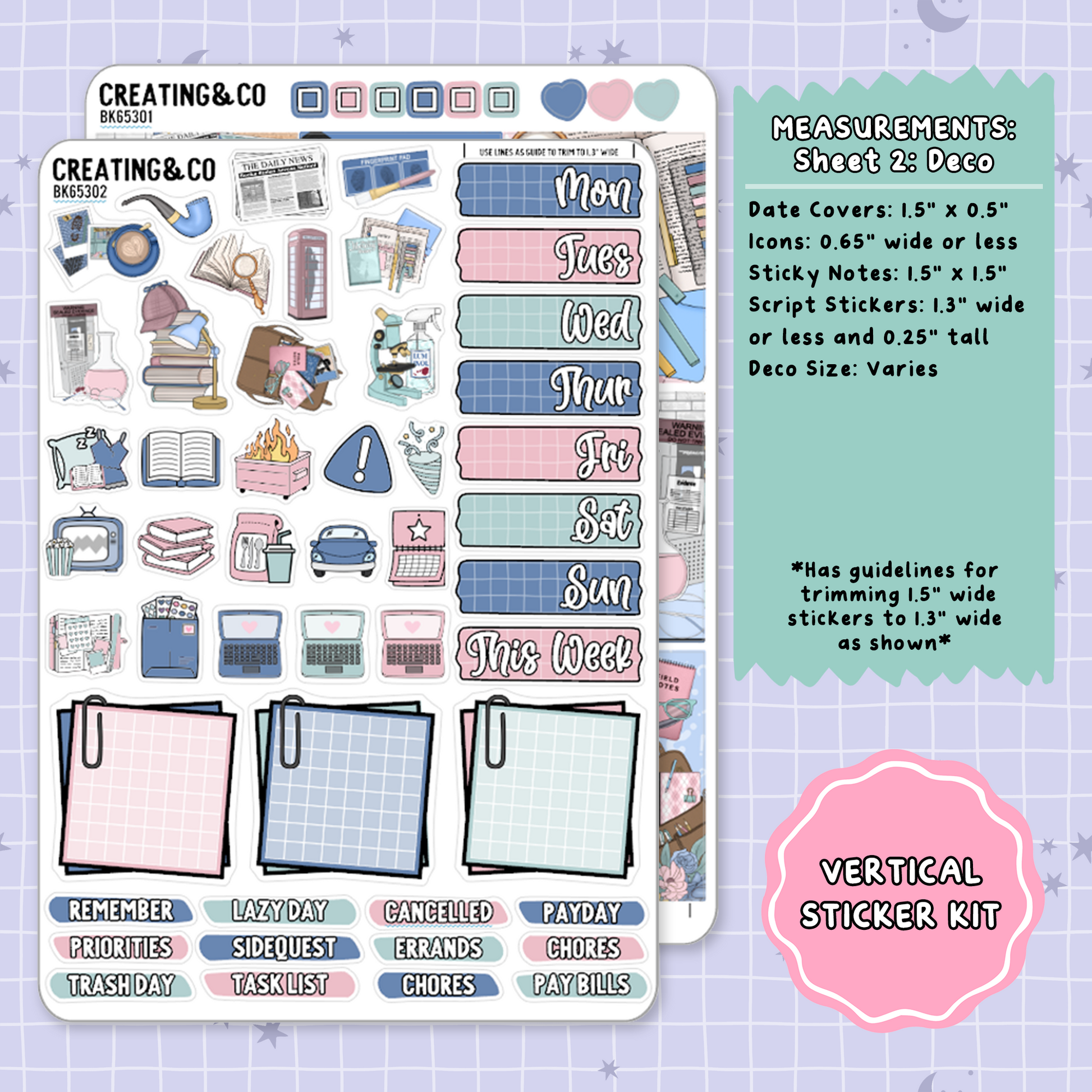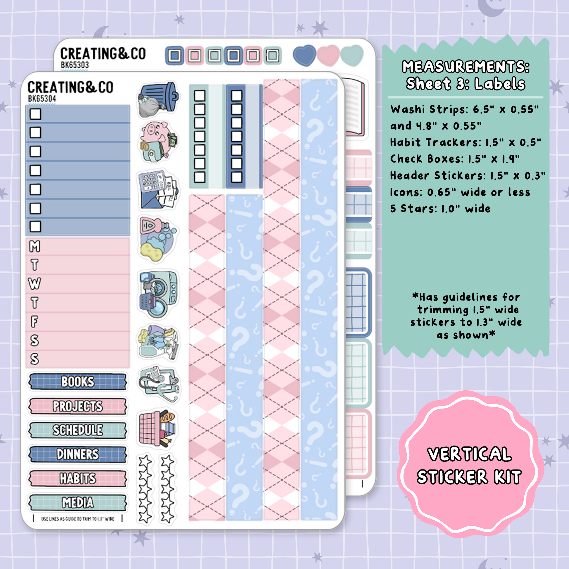 - -Vertical Weekly Planner Kit -4 5x7 Sticker Sheets - Our vertical weekly kits contains approximately 100 functional stickers -- exact amount varies due to the amount of deco that can fit on the 2nd page.