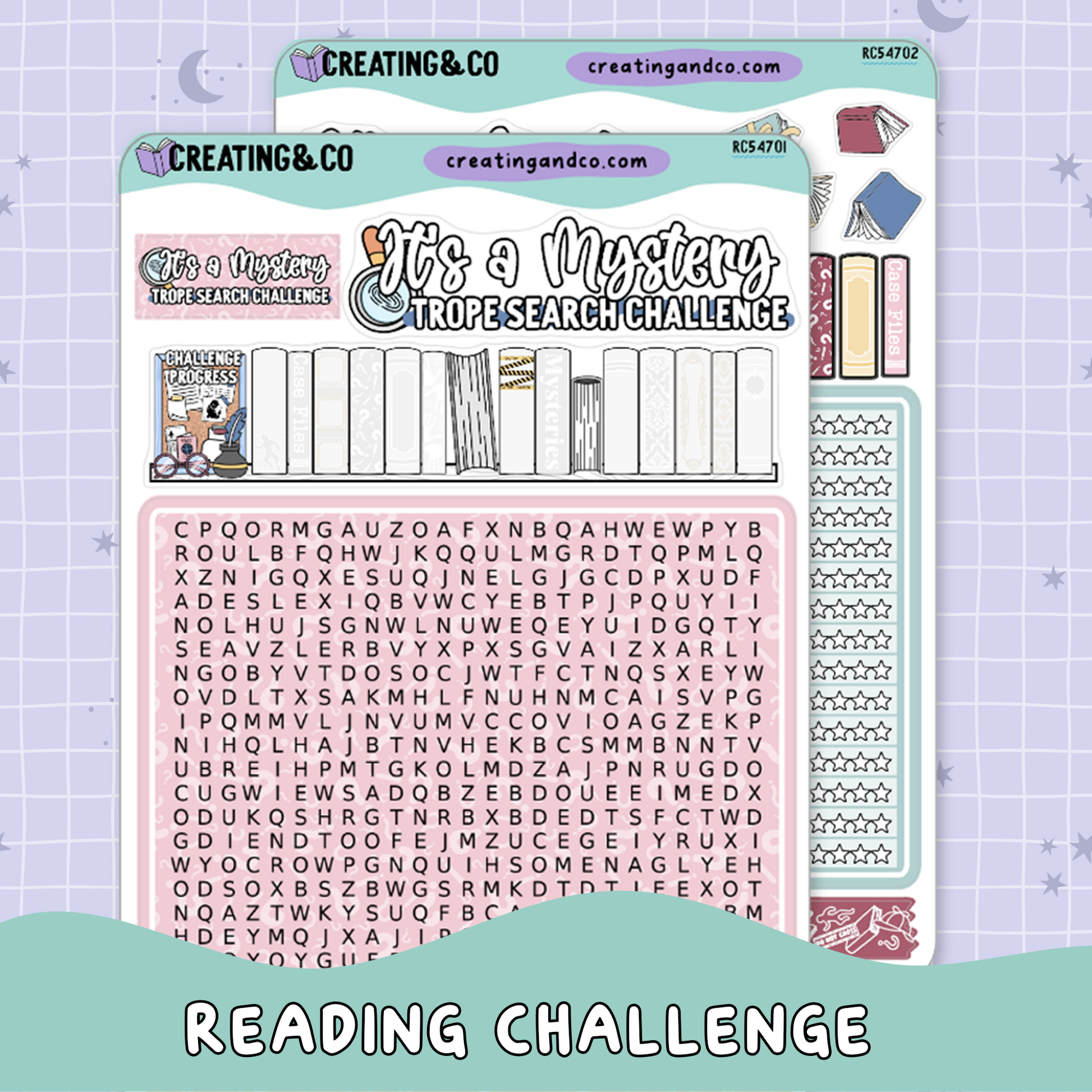 - Word Search Reading Challenge Set - 2 5x7 Sticker Sheets for using in your planner or journal. Comes with a "badge" sticker for keeping track of which challenges you complete throughout the year.
