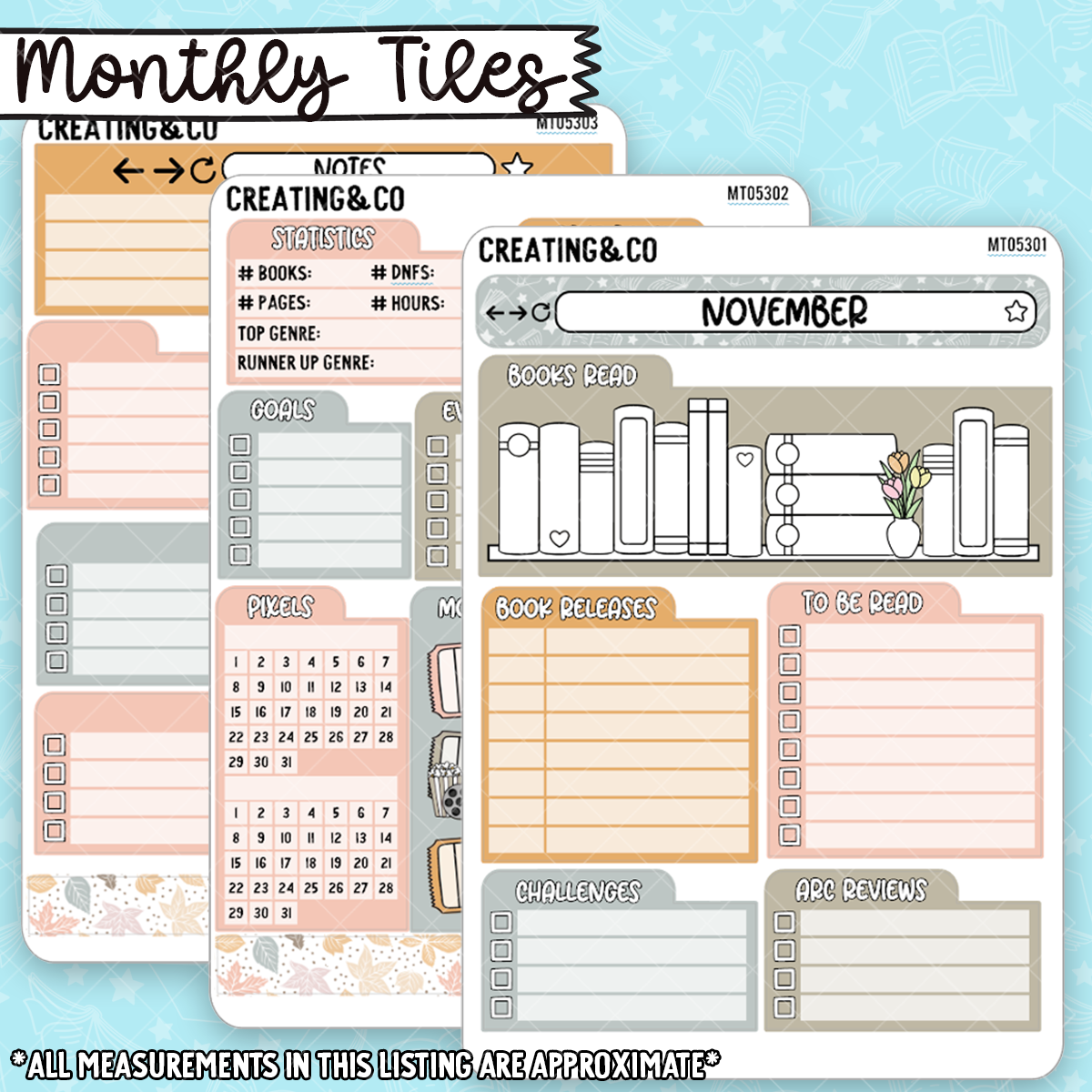 This set of stickers is designed for you to build a monthly wrap up page, tracking what you like. Use the "tiles" on a single page or sprinkled throughout your planner!