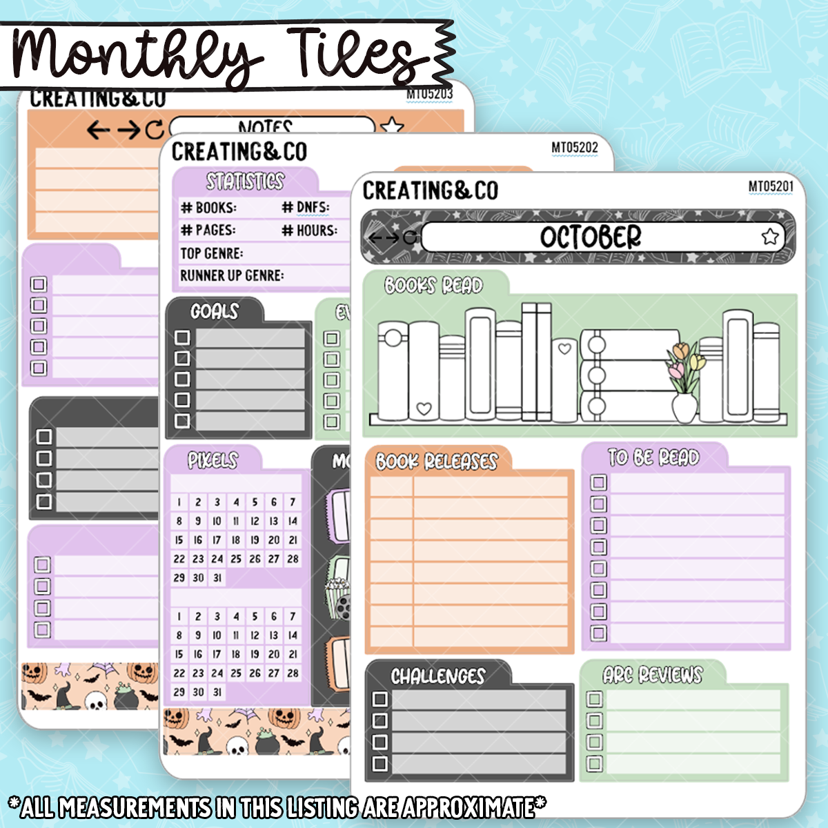 This set of stickers is designed for you to build a monthly wrap up page, tracking what you like. Use the "tiles" on a single page or sprinkled throughout your planner!