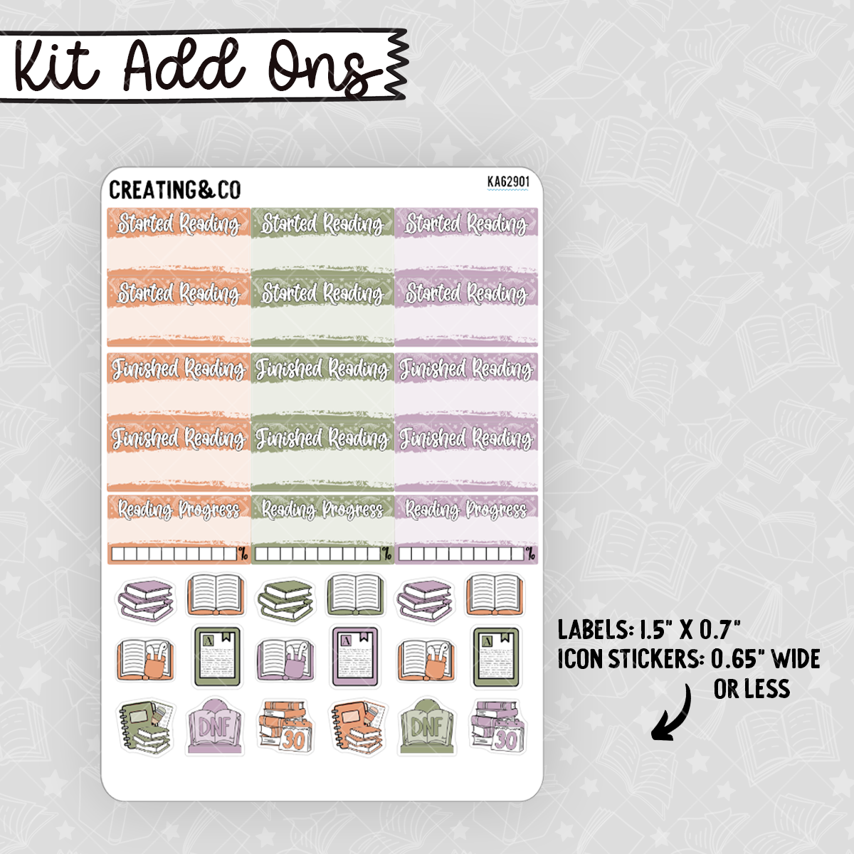 - Reading Sampler - 1 5x7 Sticker Sheets containing stickers for tracking your reading. Each set contains 33 stickers.