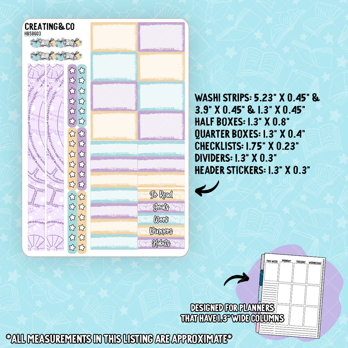 This sticker collection is designed for planners that have 1.3" wide columns and is perfect for creating a cohesive theme across just one week in your planner or even multiple!