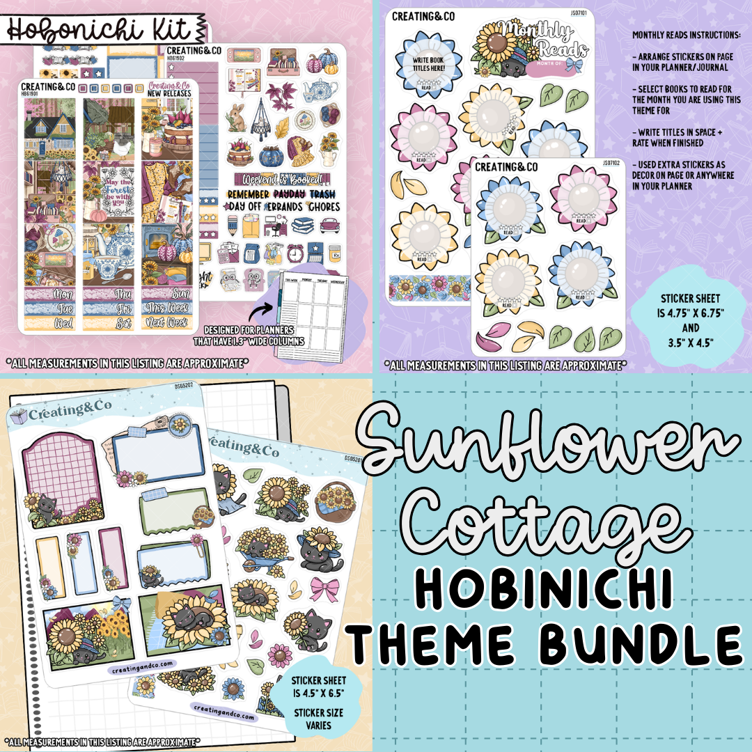 Sunflower Cottage Hobonichi Cousin Sticker Kit + Monthly Reads Bundle