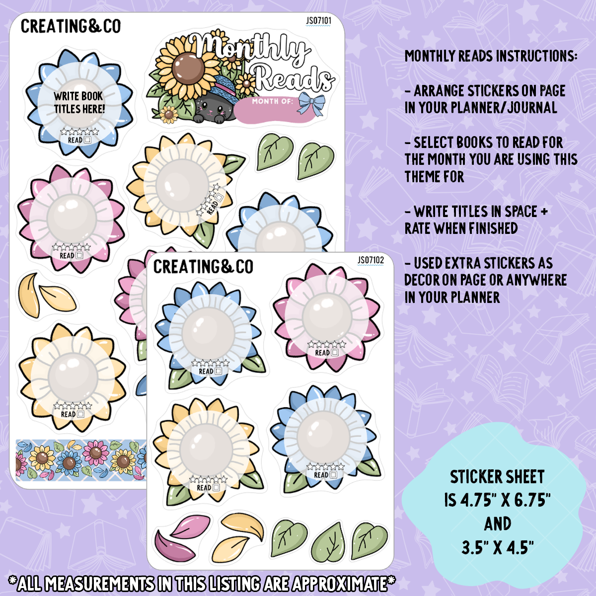 - Journal Monthly Reads Set - 1 5x7 Sticker Sheet + 1 3.5x4.5 sticker sheet for using in your planner or journal.