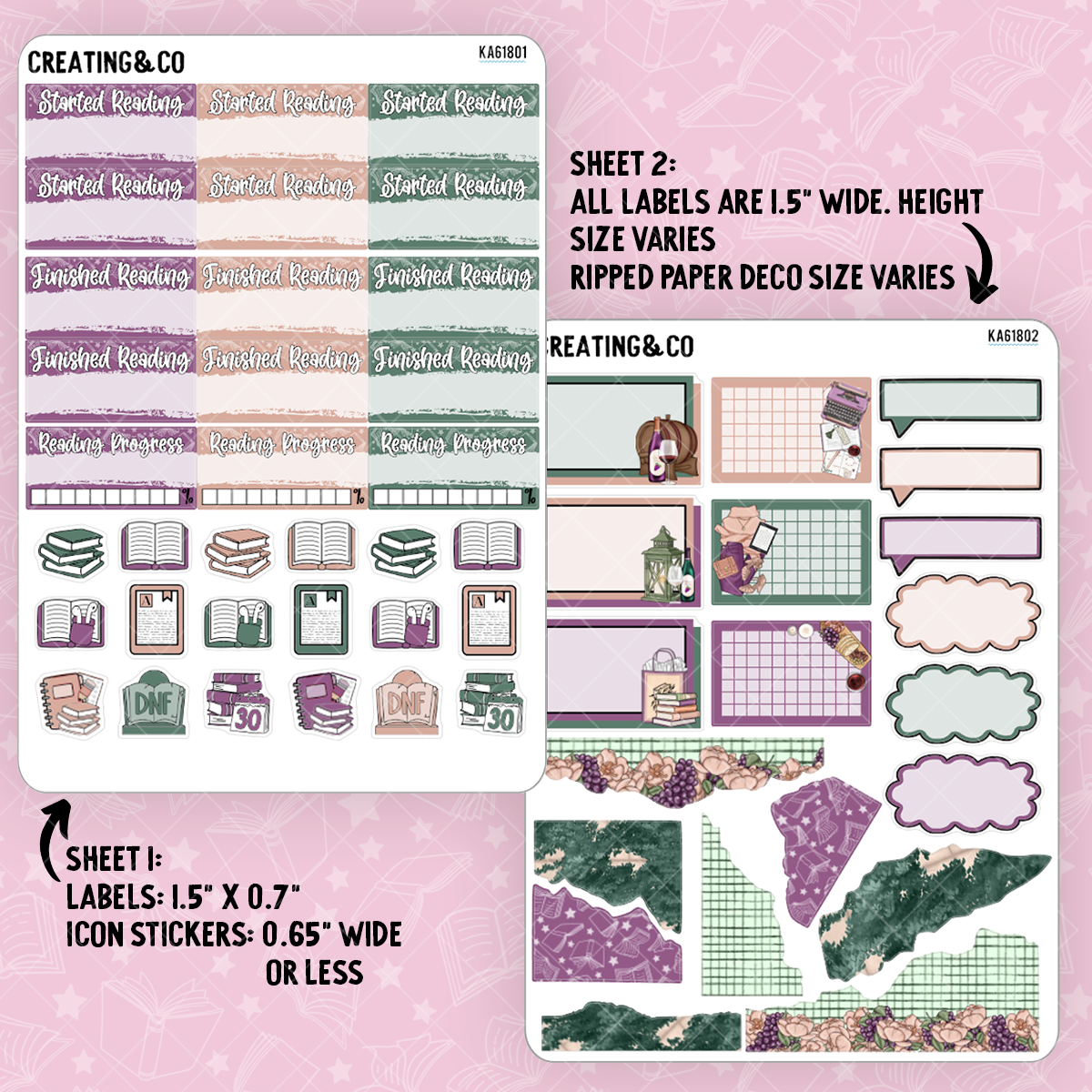 Each set is a single sheet of individually kiss-cut stickers, ready to peel and use in your planner or calendar. Each sticker sheet is 4.75" x 6.75"